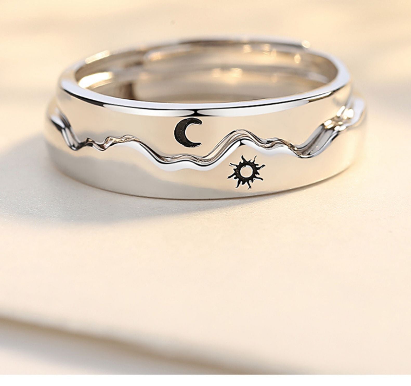 And Moon Couple Adjustable Fashion Personality Argent Pur Rings