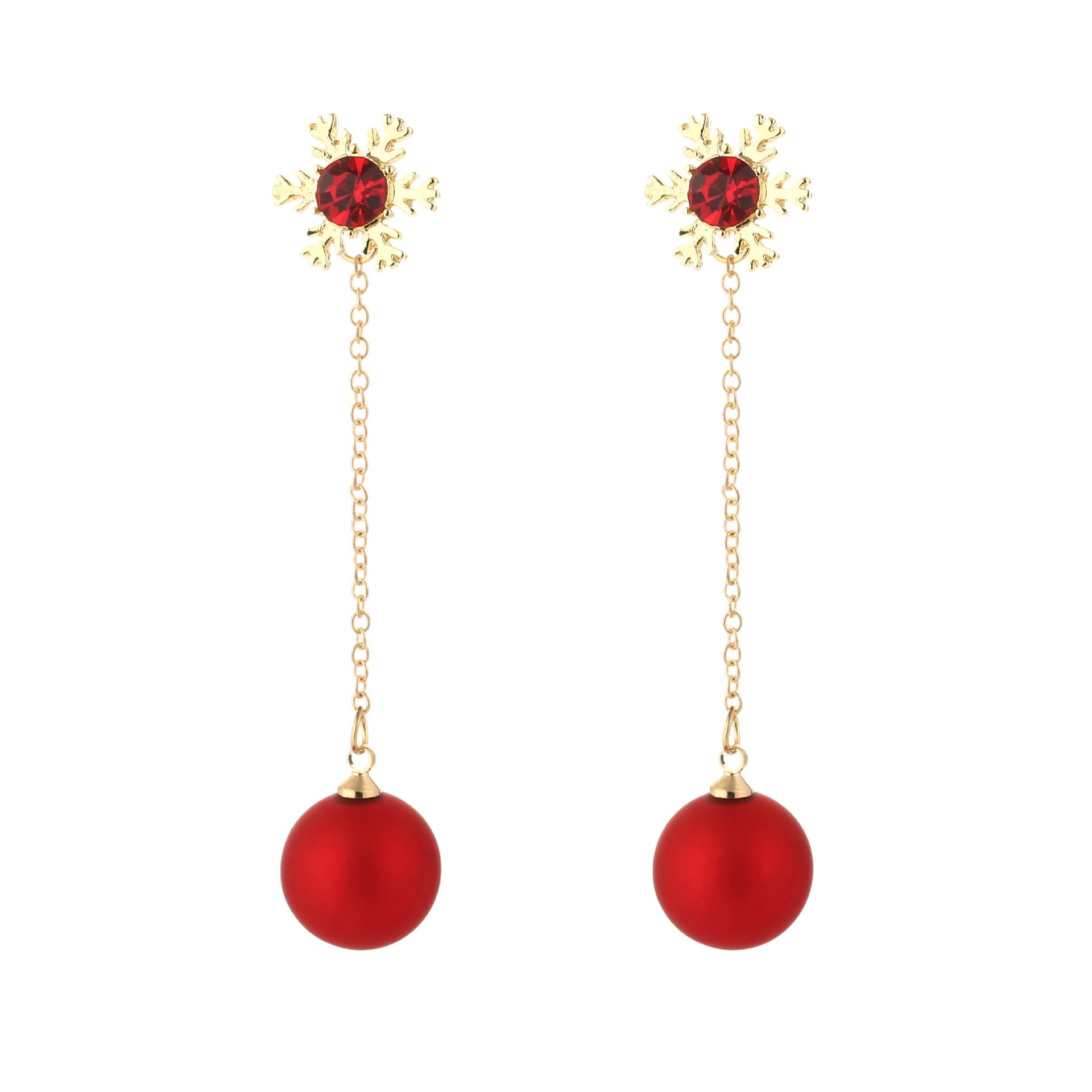 Christmas Snowflake Red Pearl Ear Personalized Long Eardrops Earrings