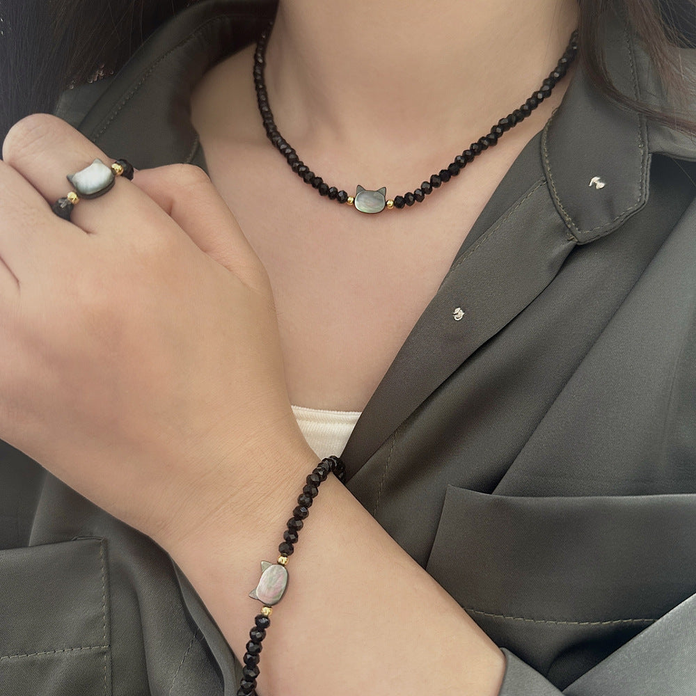 Colorful Kitty Black Crystal High-grade Daily Wear Necklaces