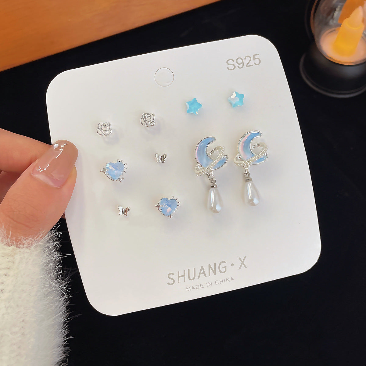 Cool Week Sier Needle Niche Design Colorful Laser Moon Earrings