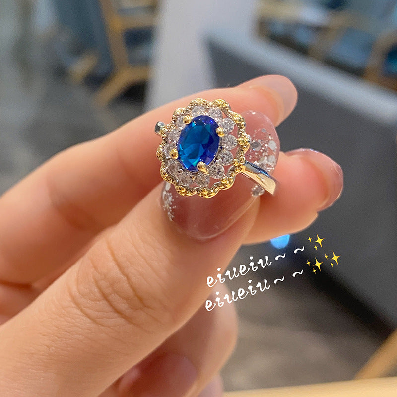 Women's Shi Man Inlaid Sapphire Blue Zircon Rings