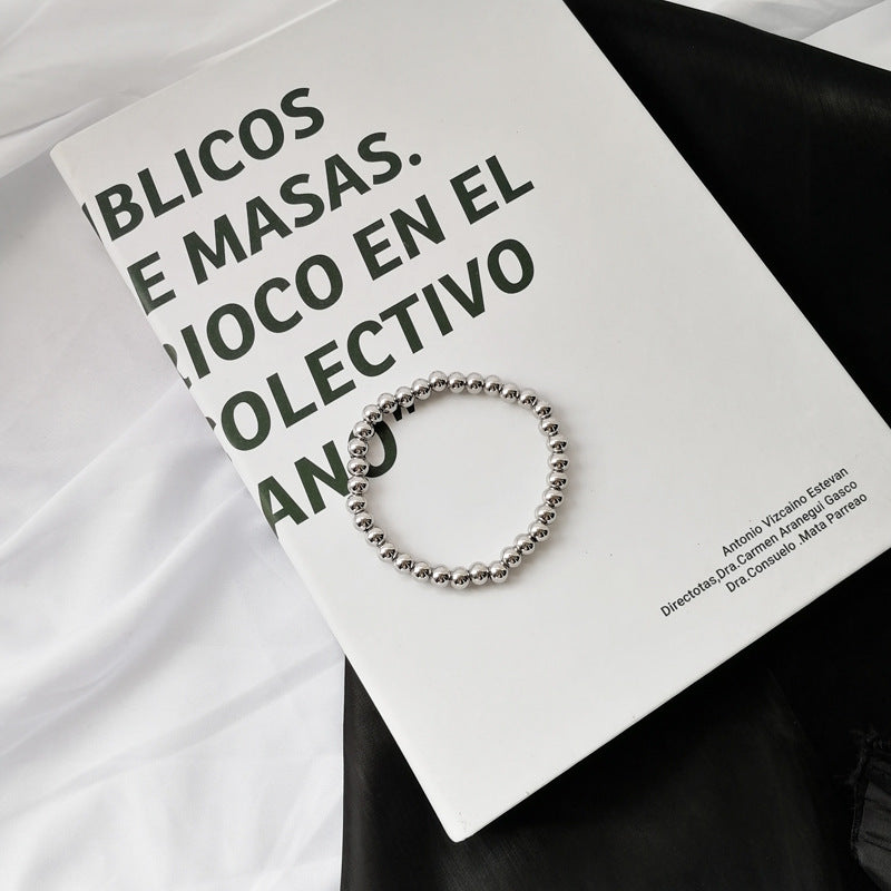 Elastic String Personalized Hip Hop Titanium Round Beads Bracelets