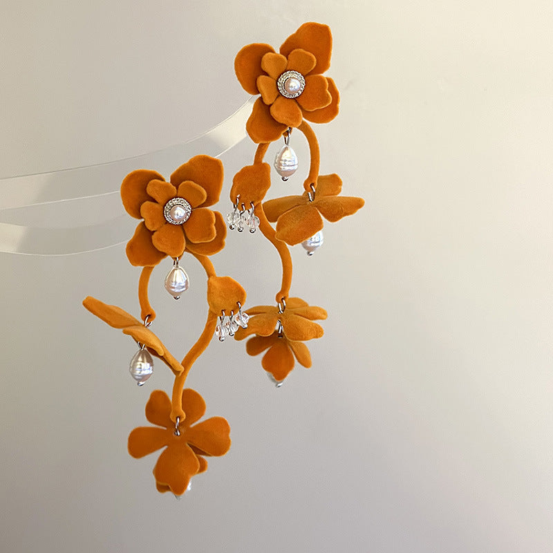 Fashionable Long Dopamine Flocking Flower Elegant Earrings