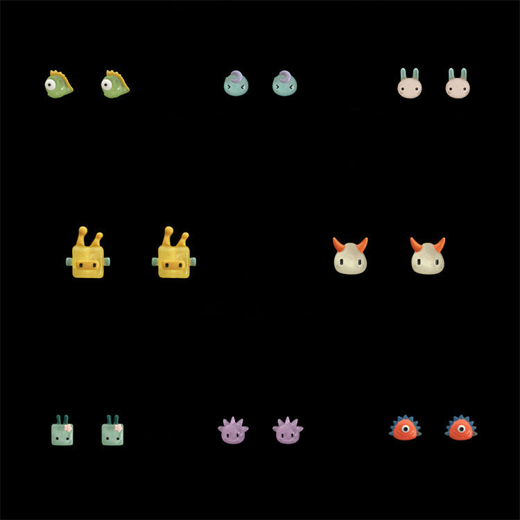Funny Cartoon Animal Resin Personalized Fun Little Monster Niche Earrings