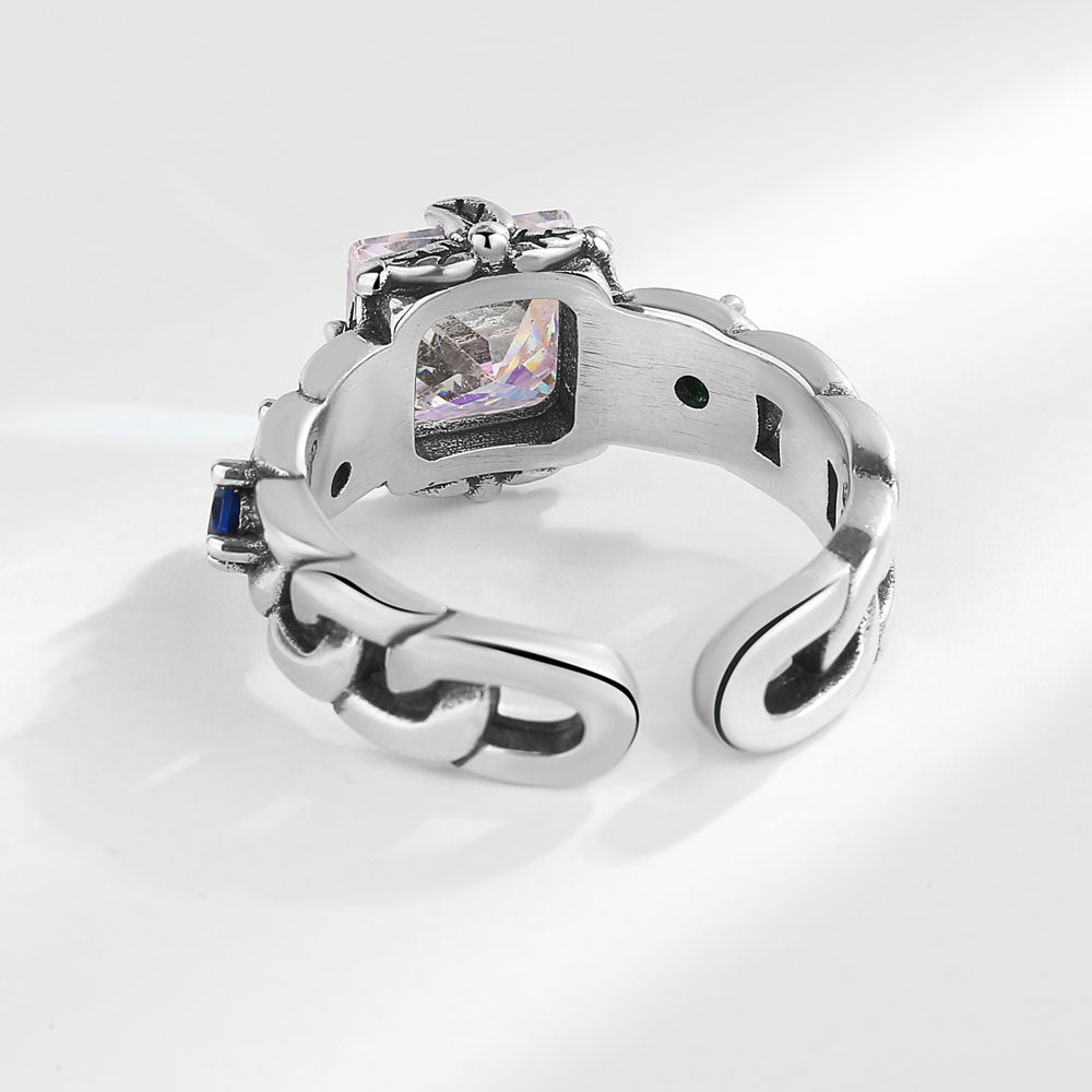 Women's Shi Man Inlaid Sapphire Blue Zircon Rings