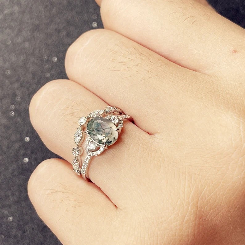 Women's Shi Man Inlaid Sapphire Blue Zircon Rings