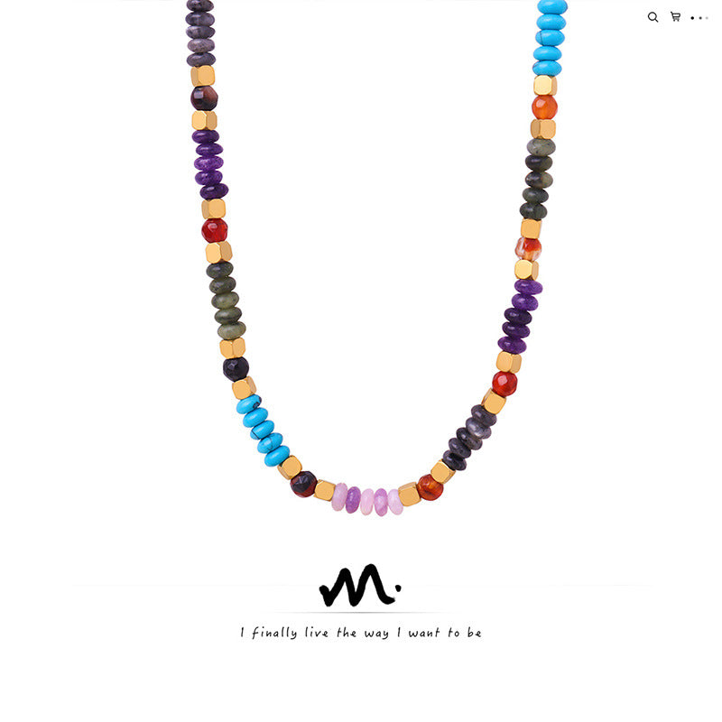 High-grade Light Luxury Mixed Color Natural Stone Abacus Necklaces