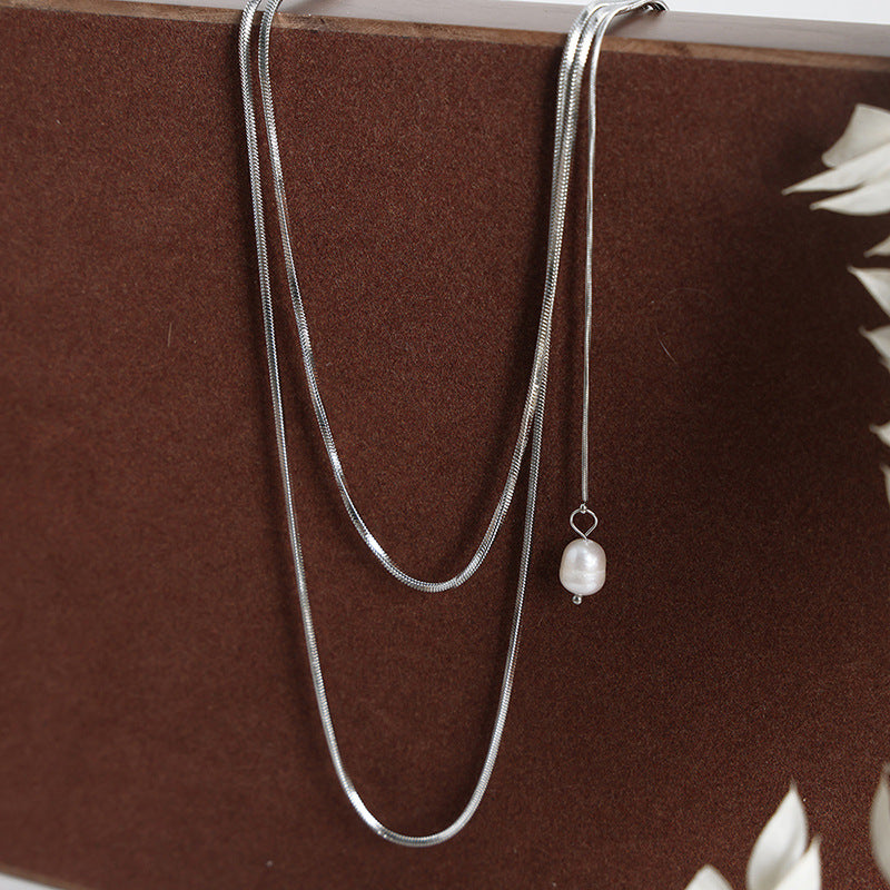 High Sense Niche Design Titanium Steel Pearl Pendant Sweater Necklaces