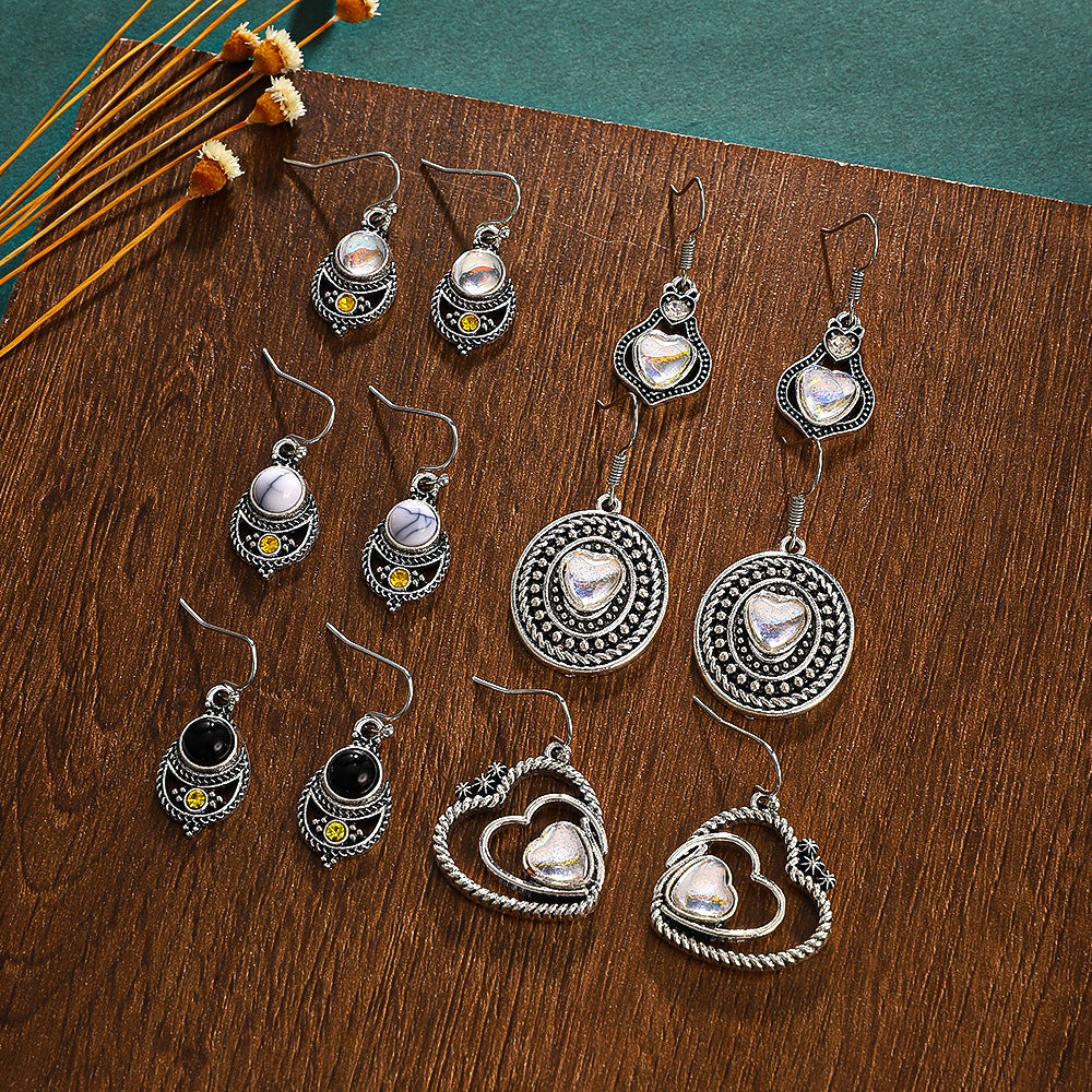 Love Turquoise Alloy Distressed Geometric Moonstone Earrings