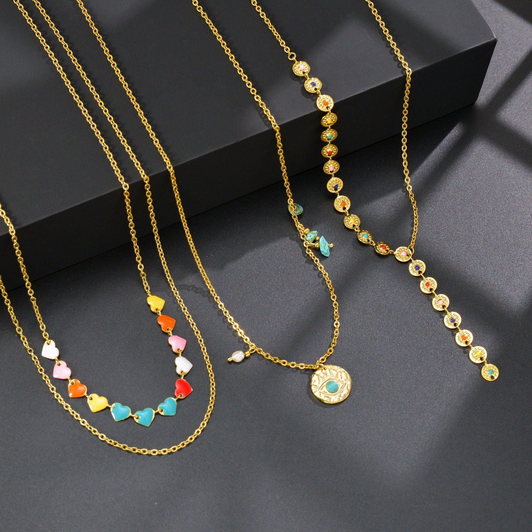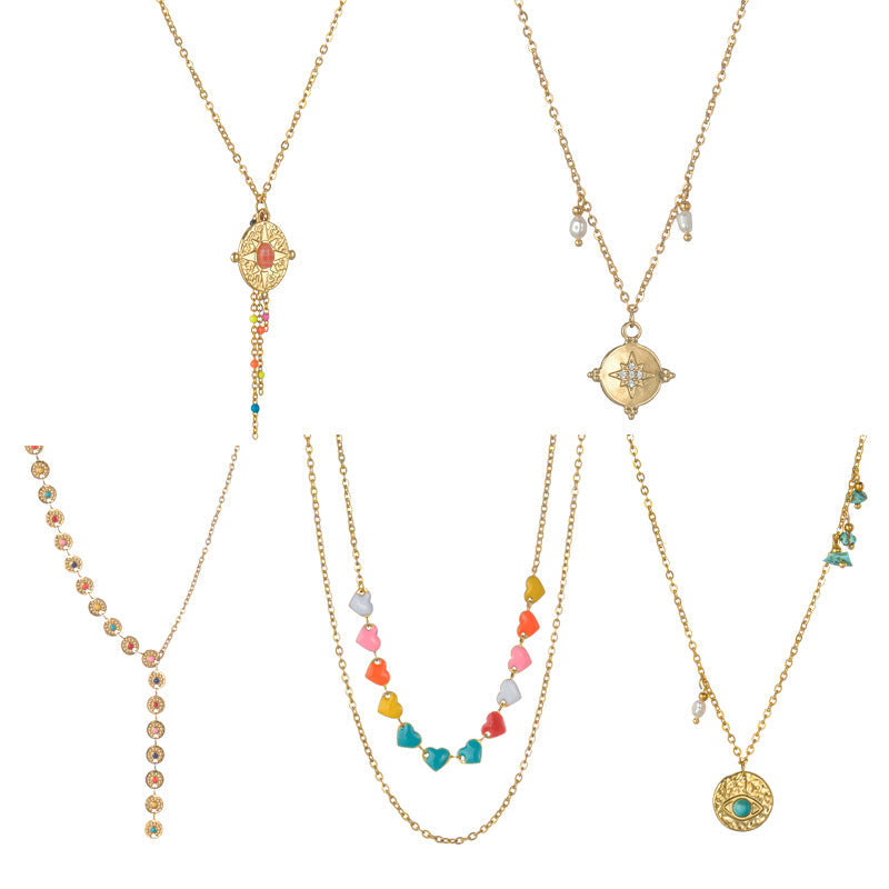 Luxury Oil Love Turquoise Eye Pendant Stainless Necklaces