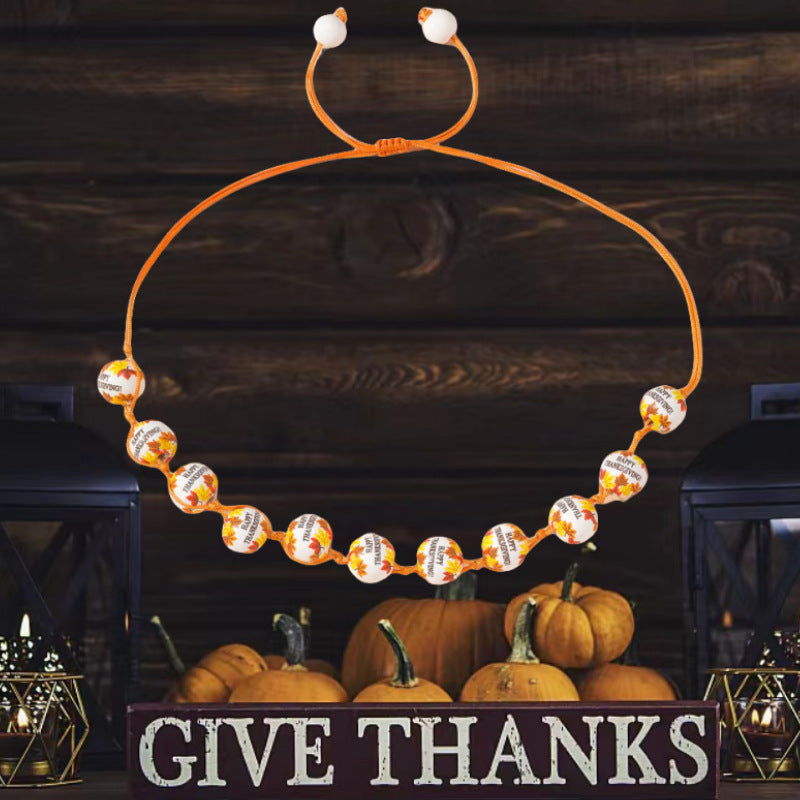 Maple Leaf Printed Wooden Beaded Female Necklaces