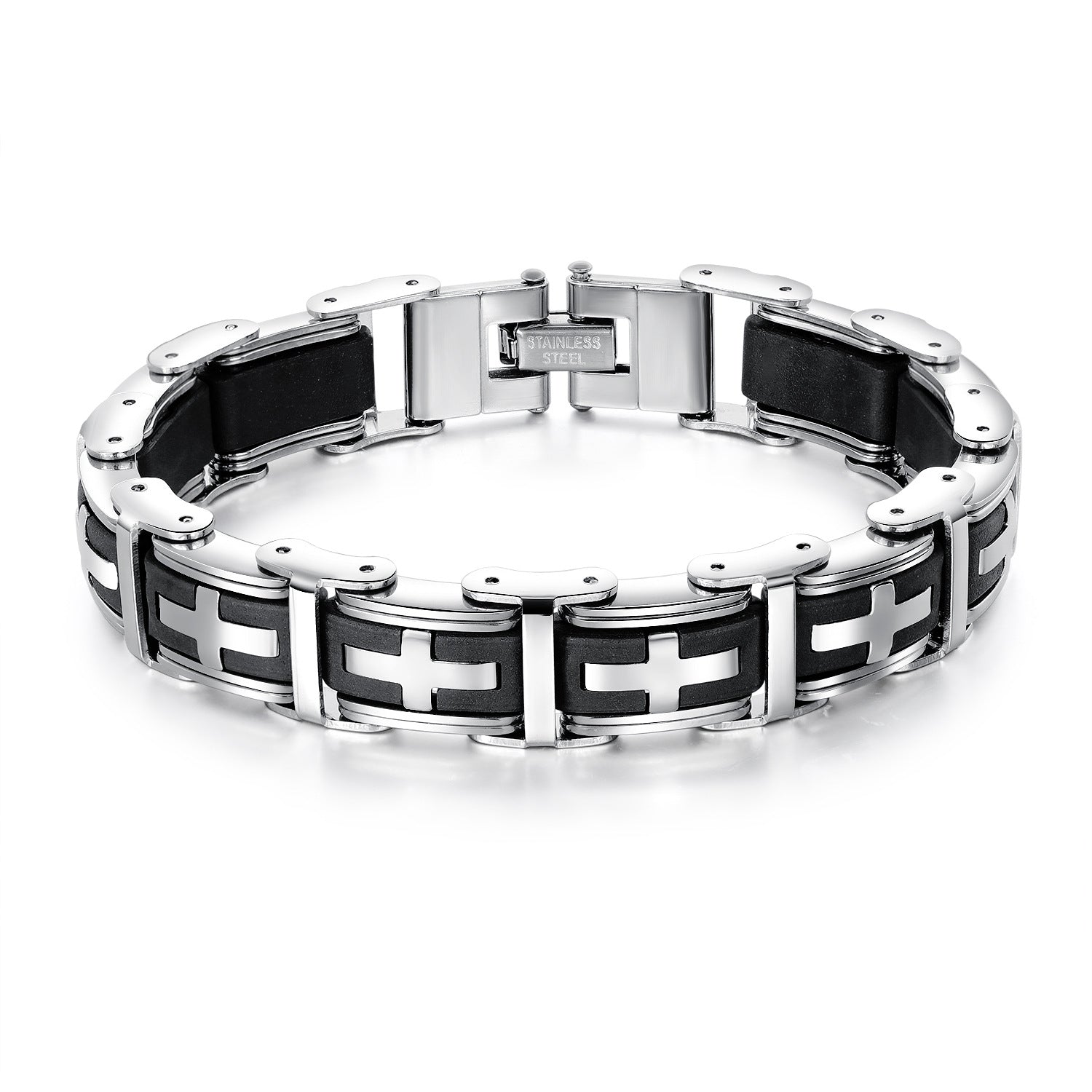 Men's Creative Ornament Classic Cross Stainless Steel Silica Gel Bracelets