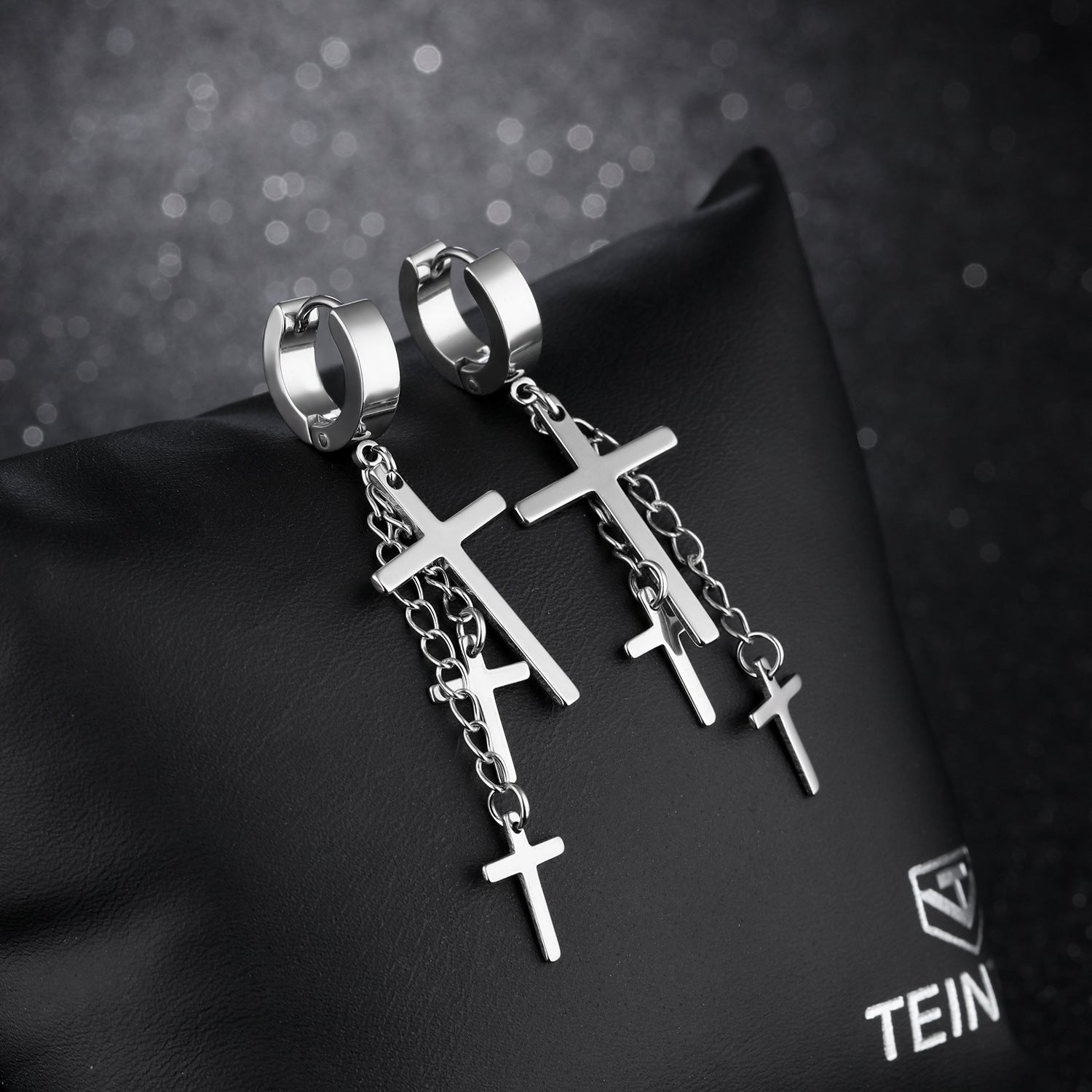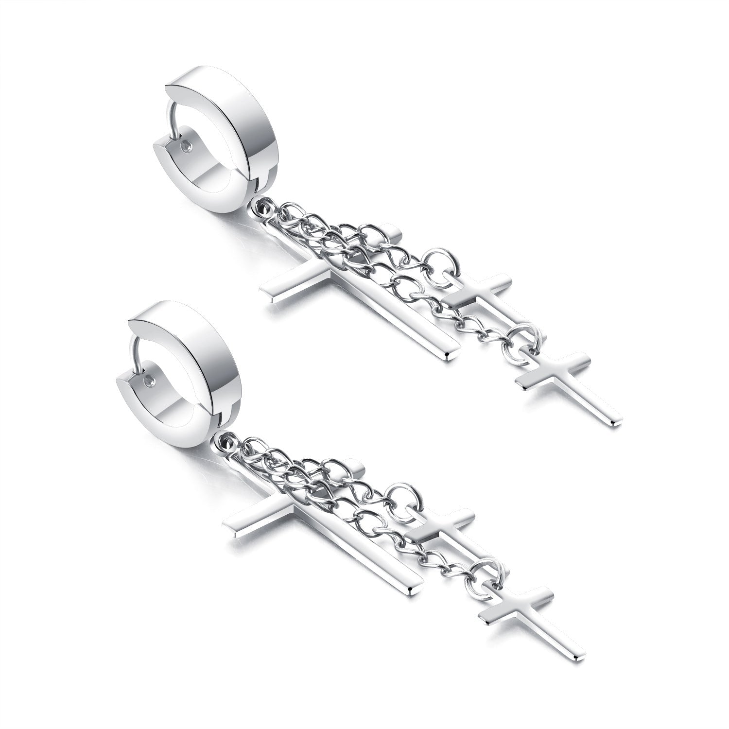 Men's Korean Style Fashion Titanium Steel Cross Earrings