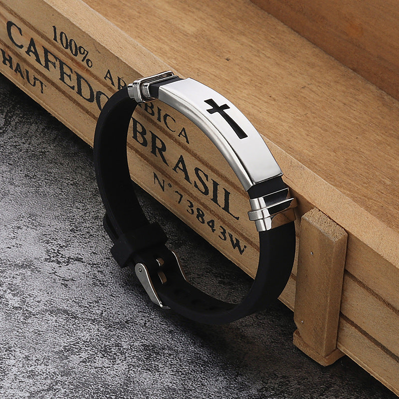 Men's Silicone Stainless Steel Sports Korean Fashion Cross Lady Bracelets