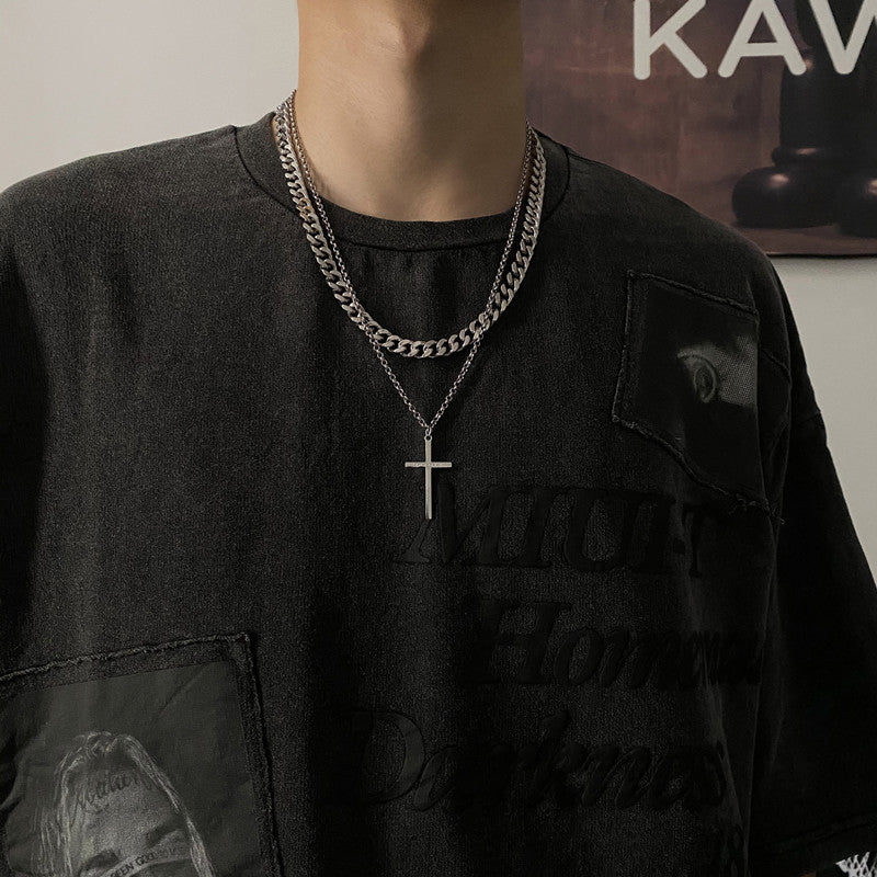 Men's Titanium Steel Cross Hip Hop Twin Necklaces