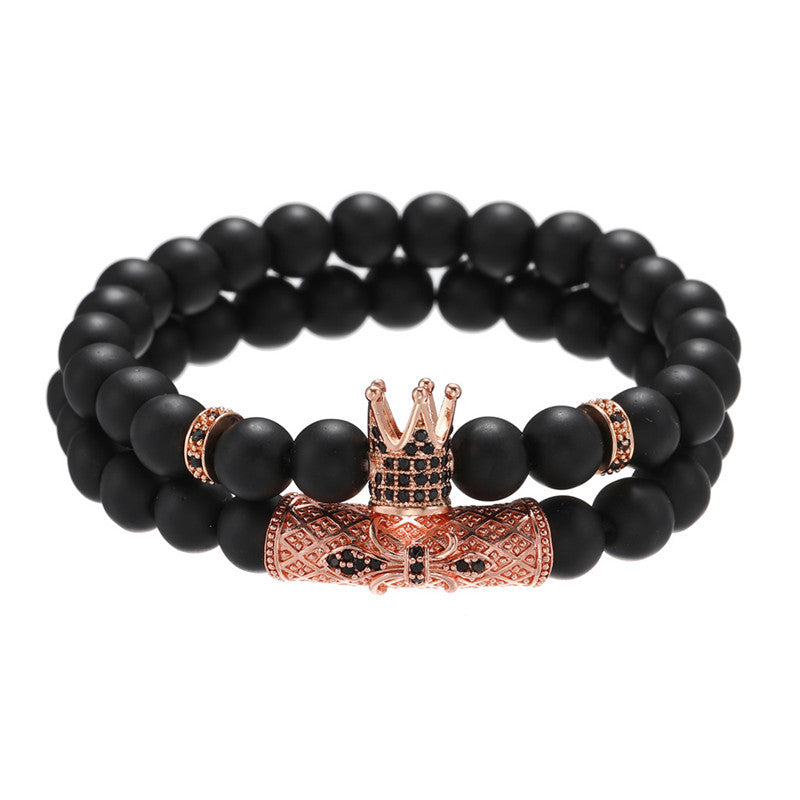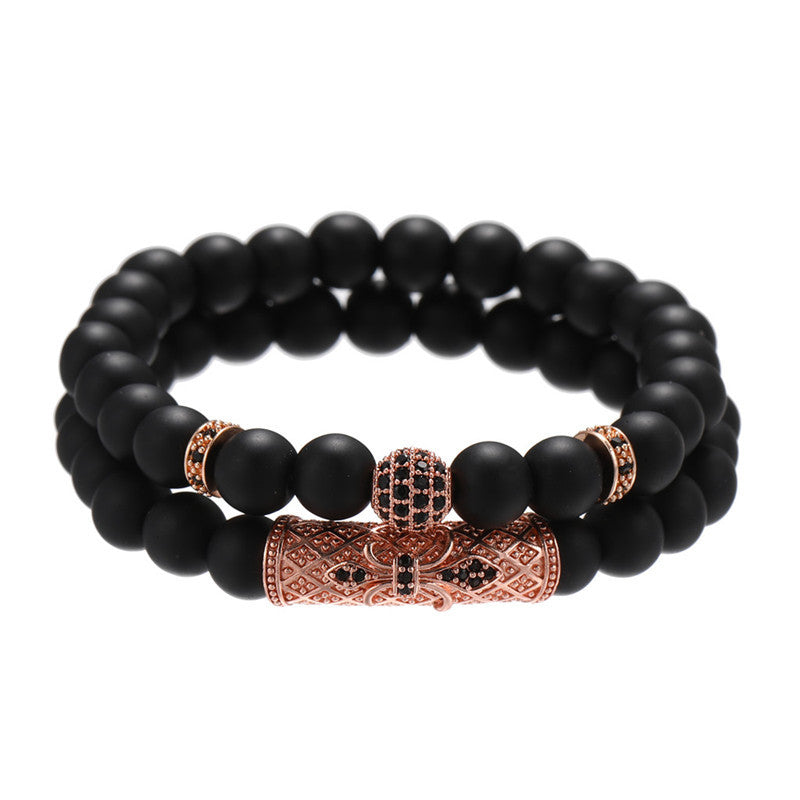 Men's Zircon Rhinestone Ball Flower Tube Spacer Bracelets