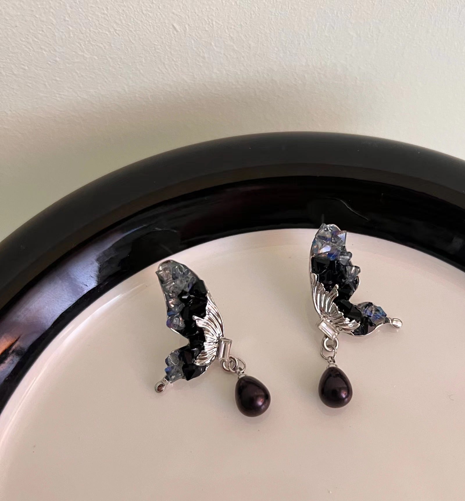 Mori Style Butterfly Crystal Female Pearl Earrings