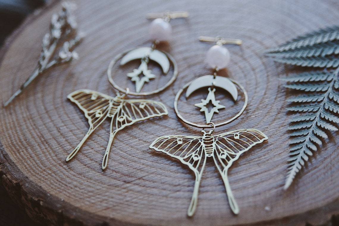 Moth Rose Quartz And Moon Bohemian Rings