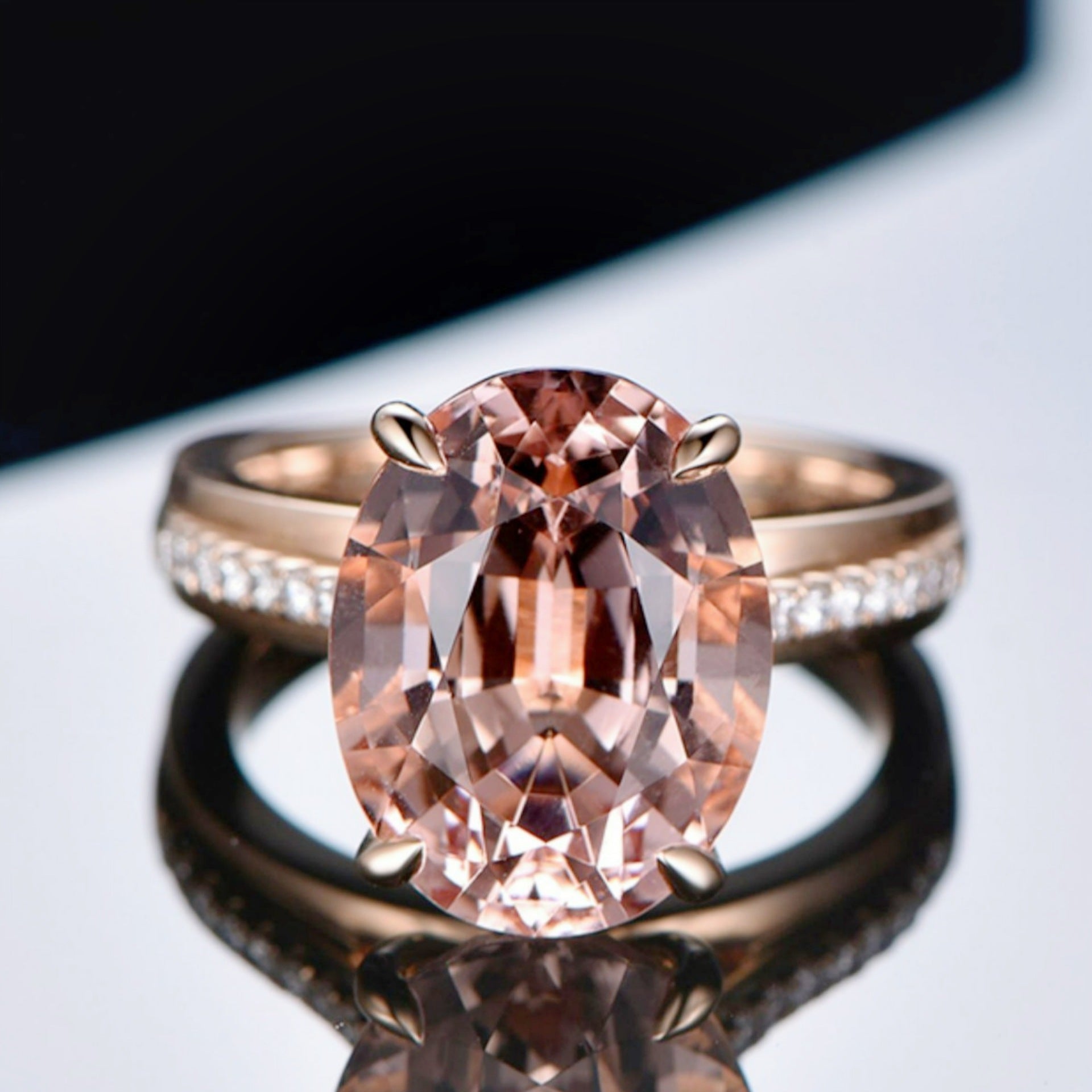 Natural Morganite Temperamental Popular Gold Plated Orange Pink Rings