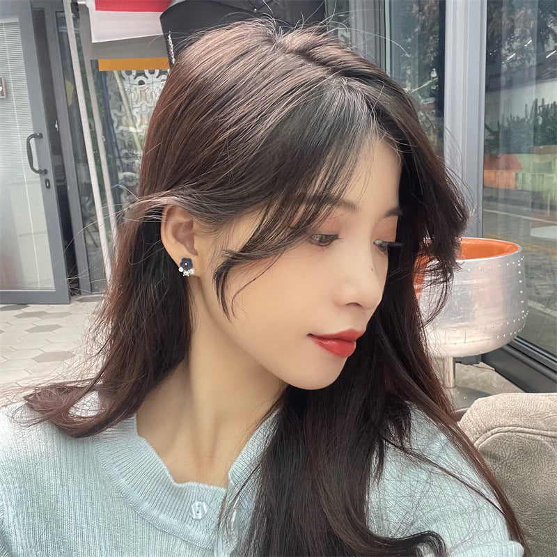 Needle Matte Sapphire Blue Small Flower Rhinestone Pearl Earrings