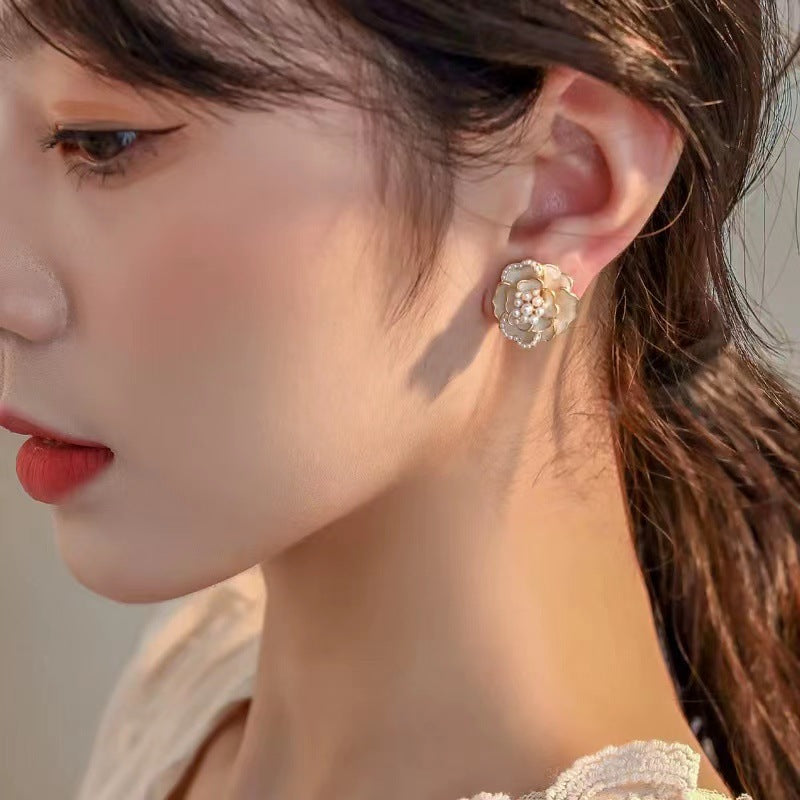 Pearl Fresh Sweet Green Enamel Light Earrings