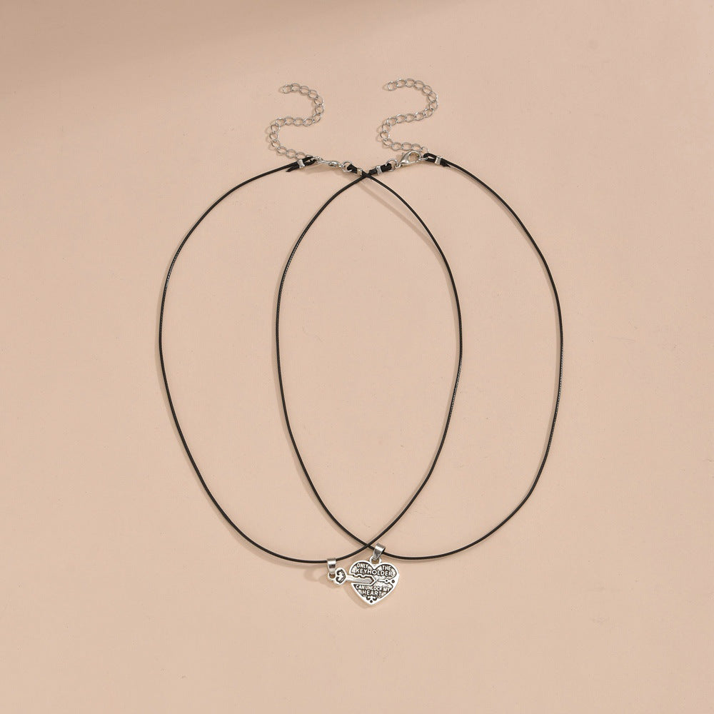 Personalized Love Key Pendant Leather Rope Couple Necklaces