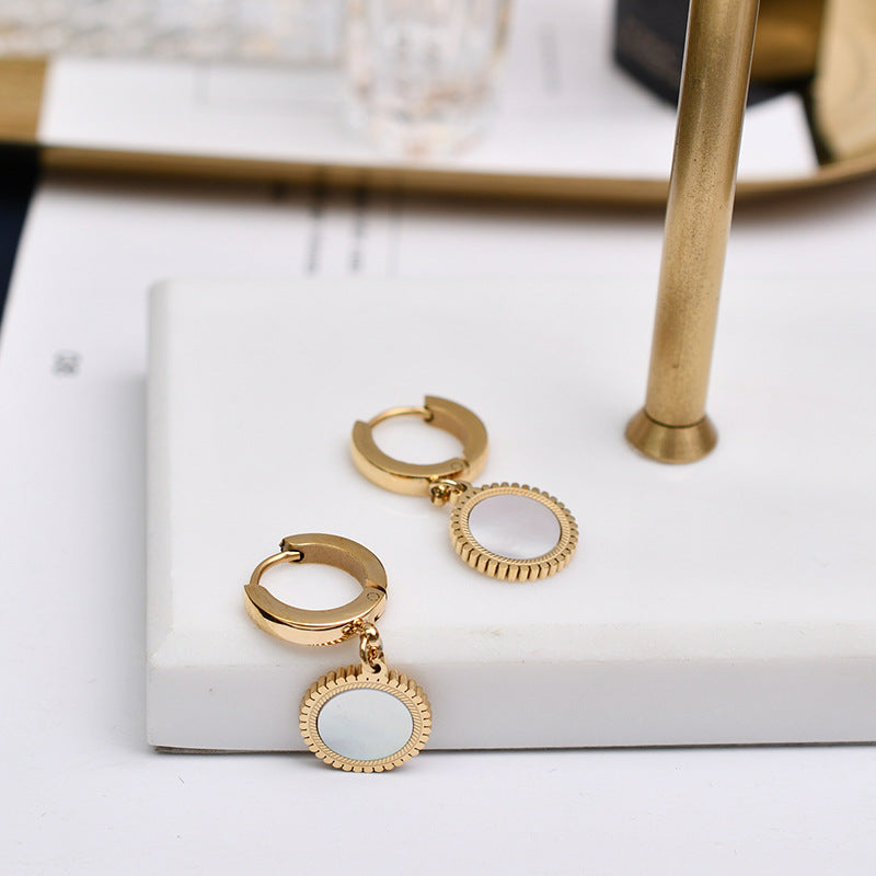 Personalized Round Black And White Shell Earrings