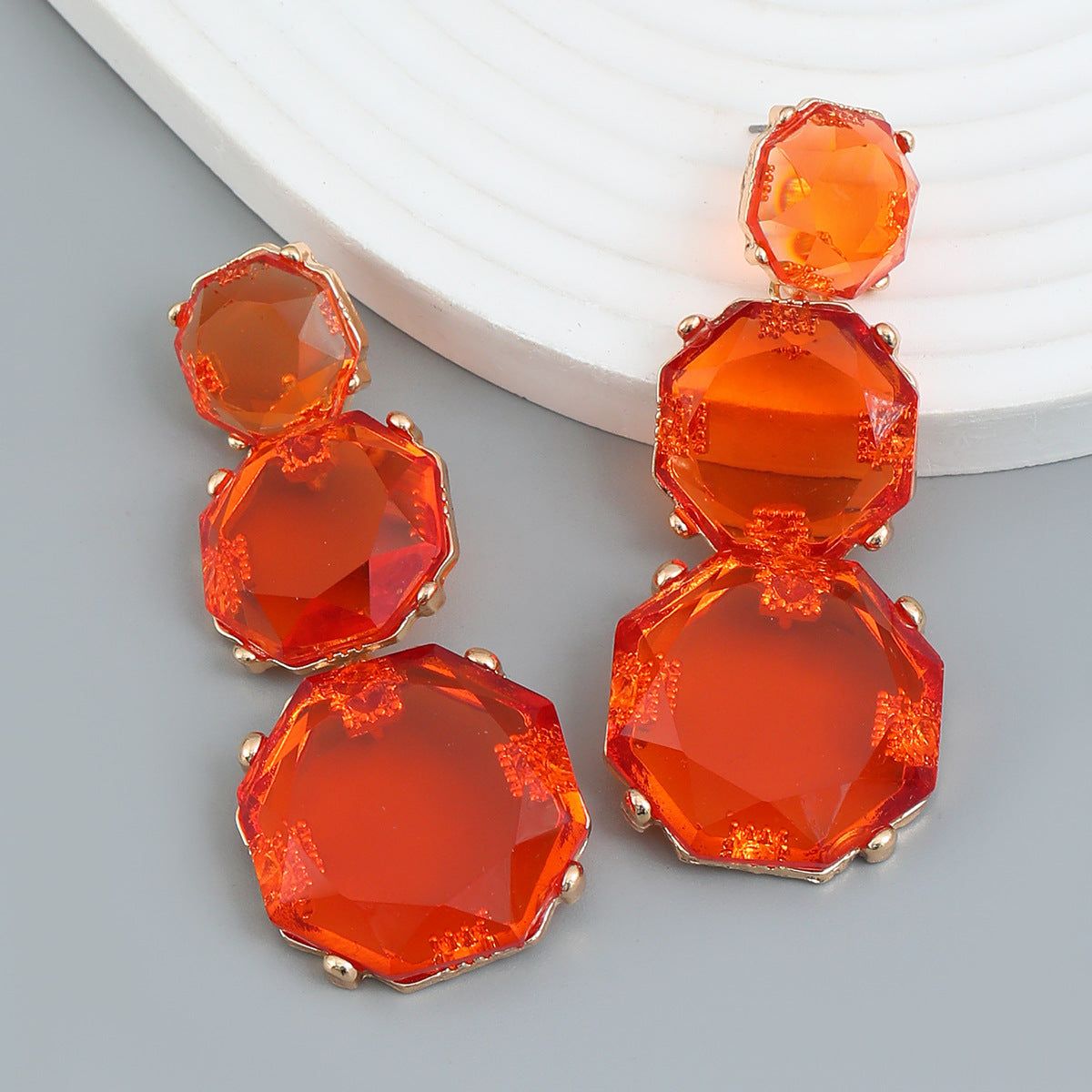 Resin Female Octagonal Long Geometric Exaggerated Earrings