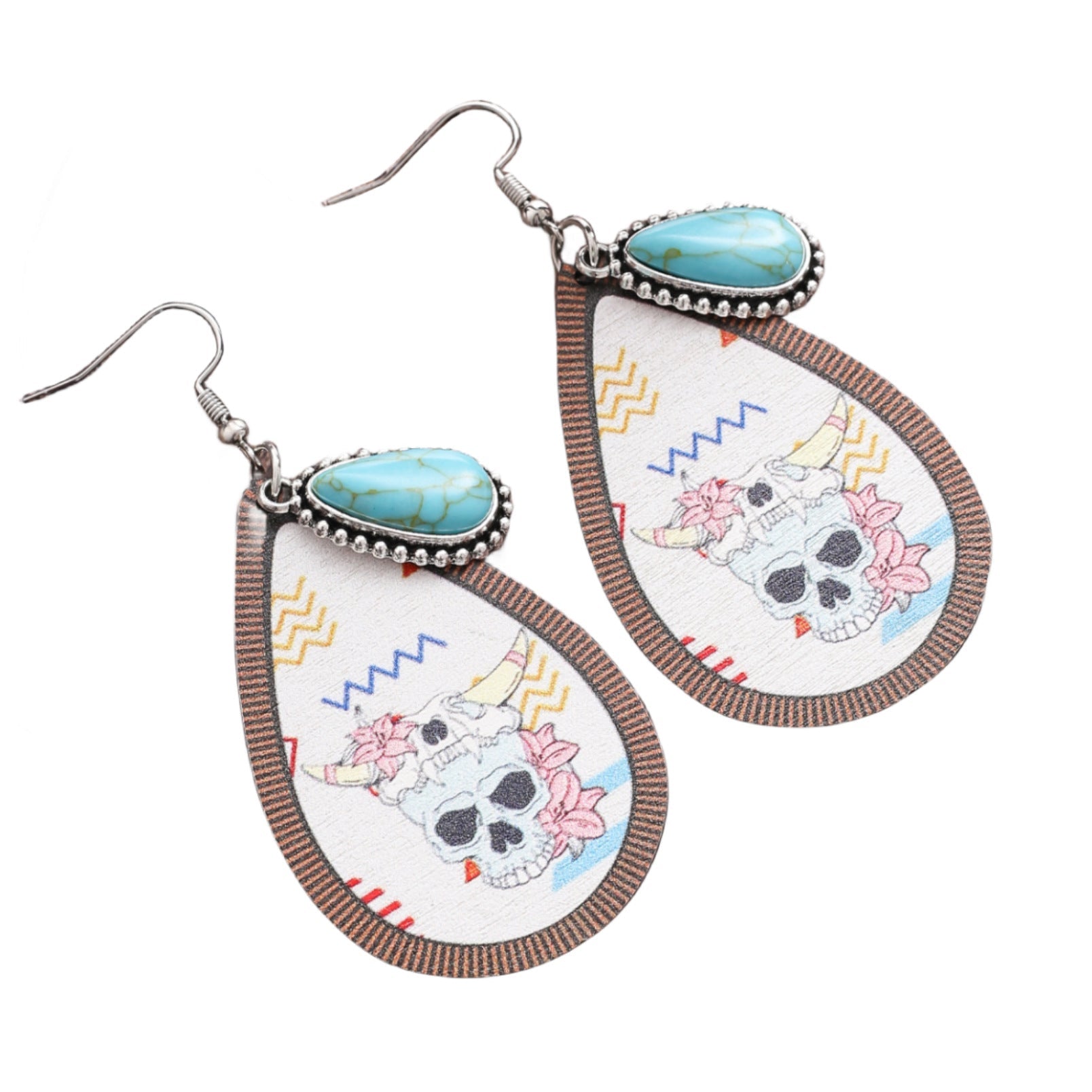 Retro Ethnic Style Fashion Skull Totem Printing Wooden Earrings