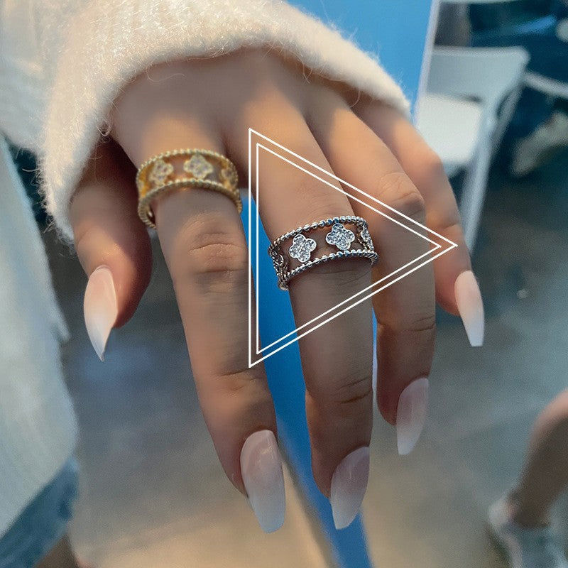 Retro Fashion Micro Inlaid Zircon Four-leaf Clover Temperament Rings