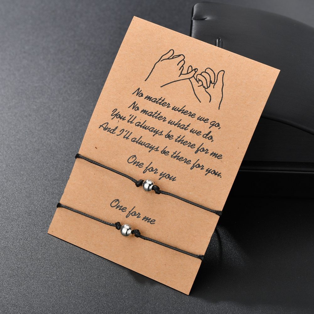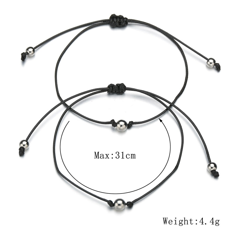 Retro Round Beads Wax Line Woven Couple Card Bracelets