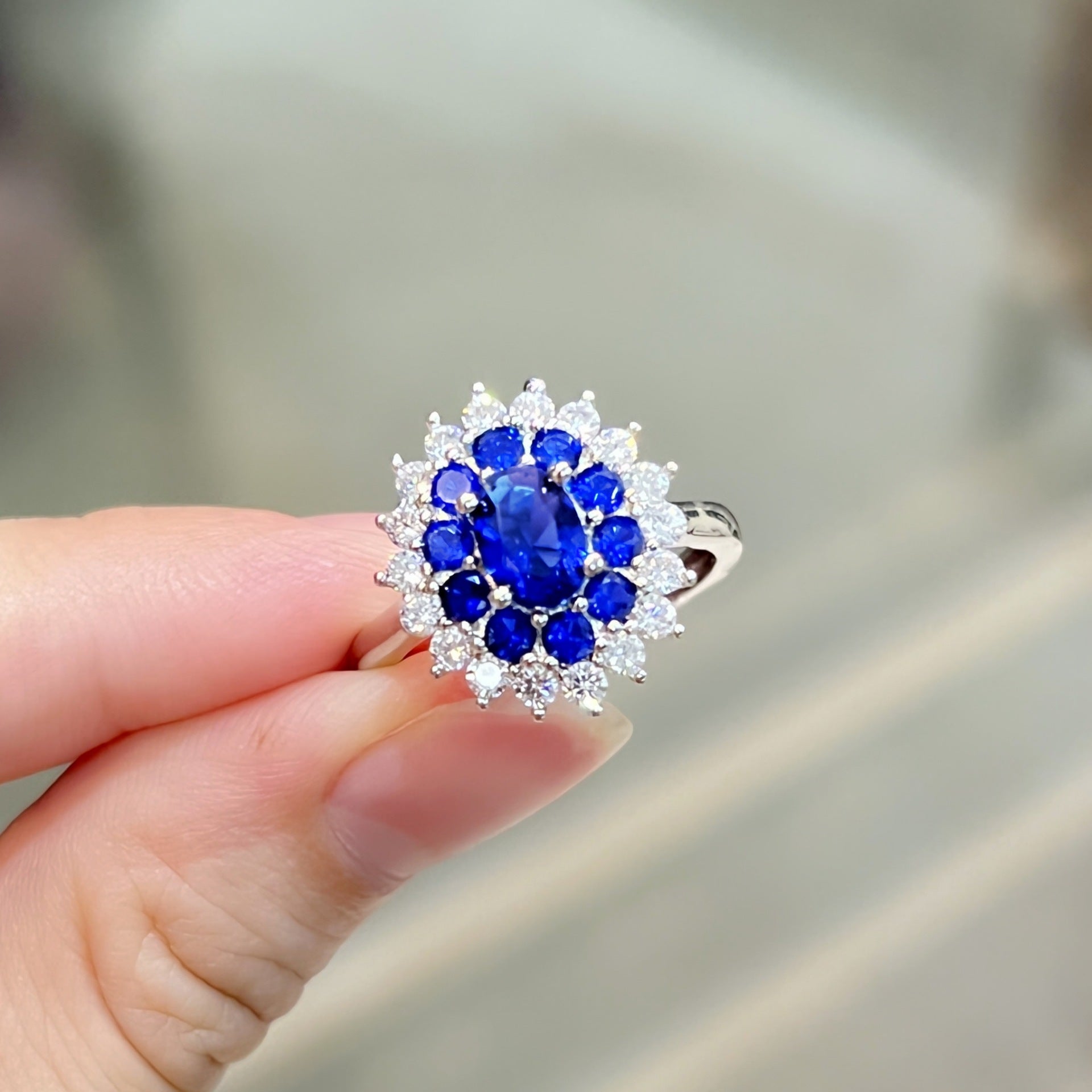 Women's Shi Man Inlaid Sapphire Blue Zircon Rings