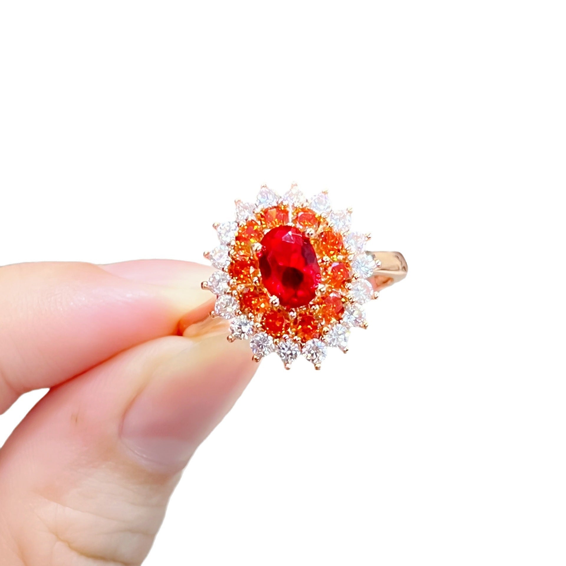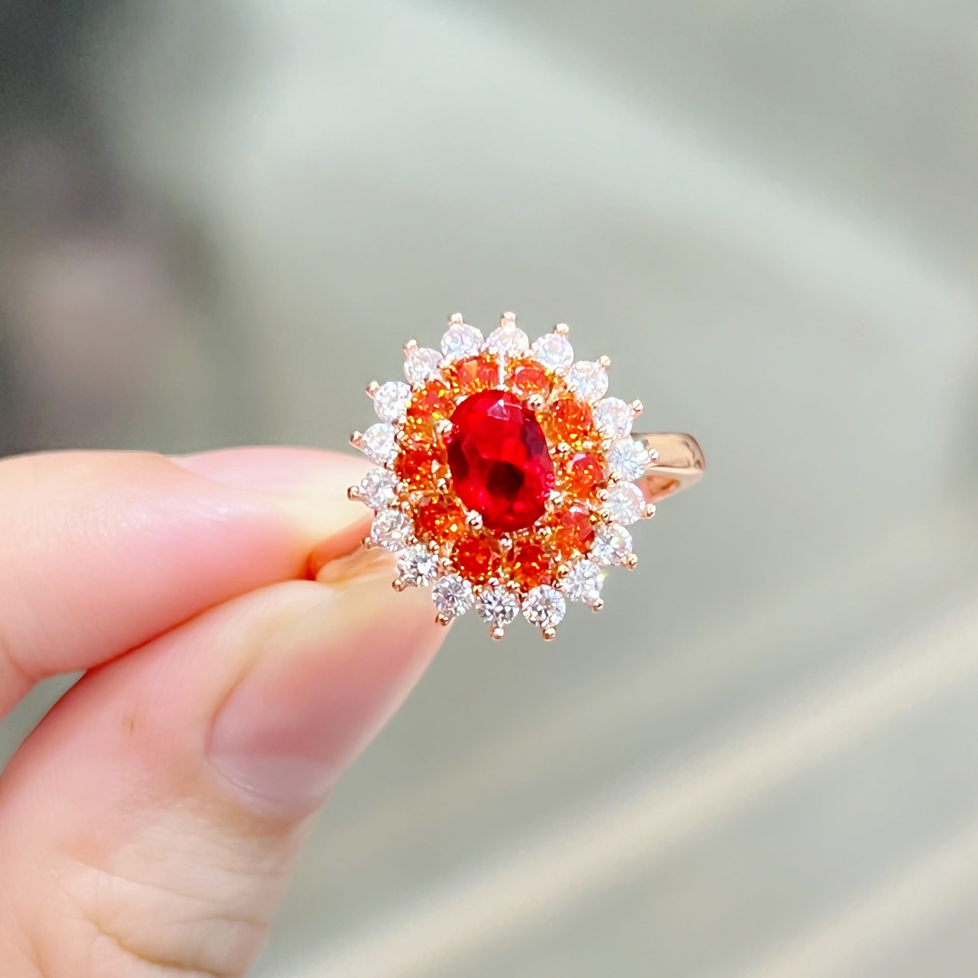 Round Arm Red Diamond Sunflower Inlaid Zircon Rings