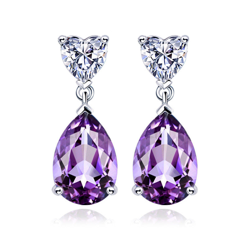 Sier Heart-shaped Blue Water Drop Pendant Natural Topaz Crystal Necklaces