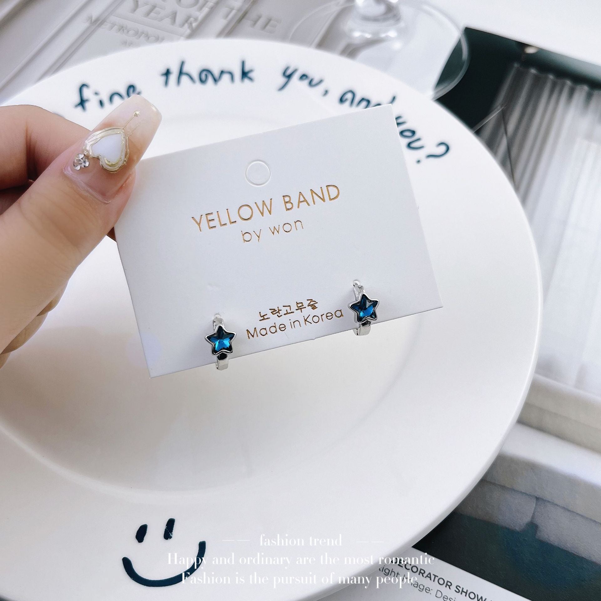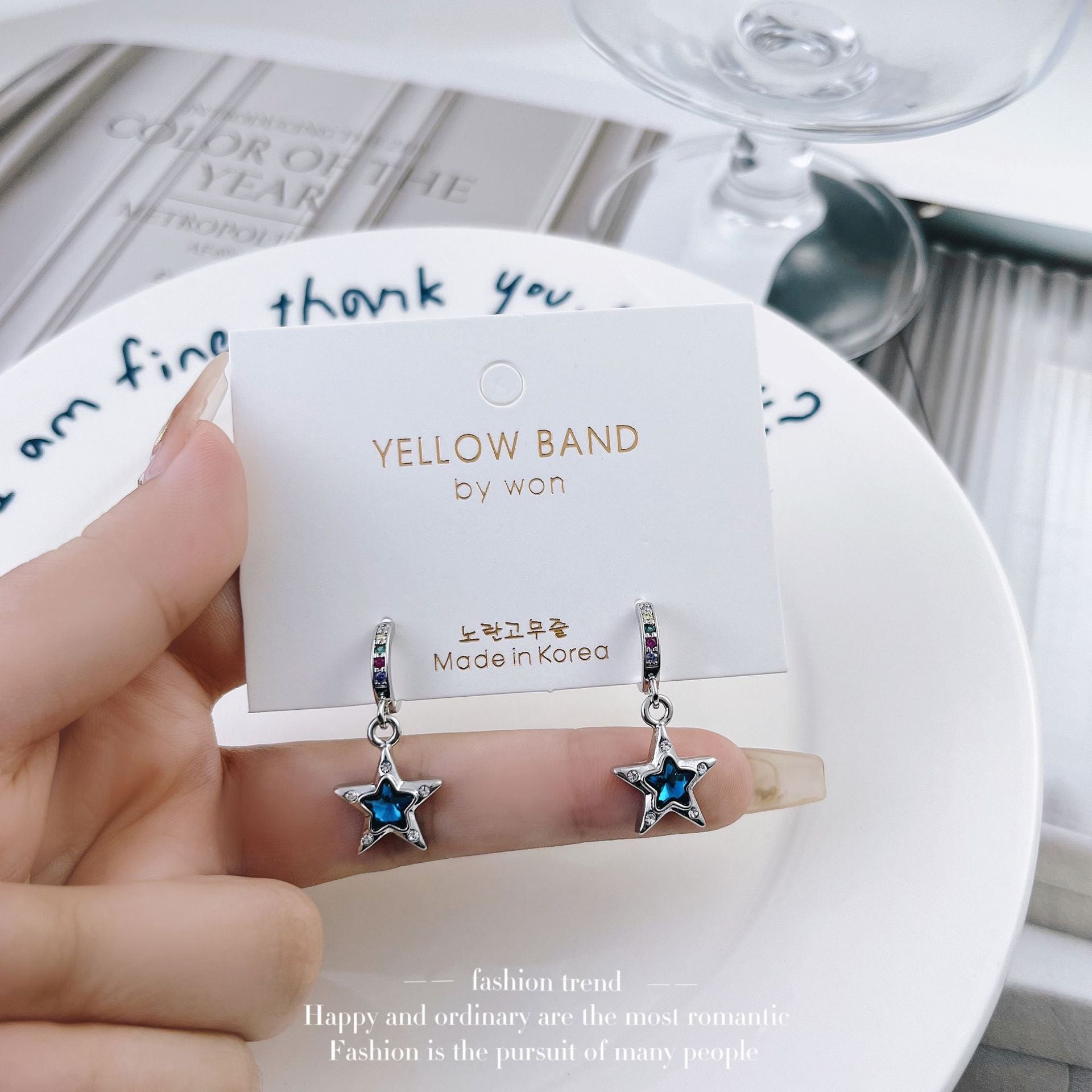 Sier Needle Blue Zircon Five-pointed Star Copper Earrings