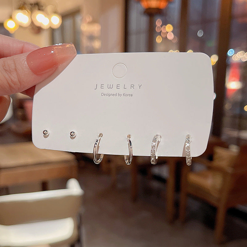 Sier Needle Simple Suit Small Ear Earrings