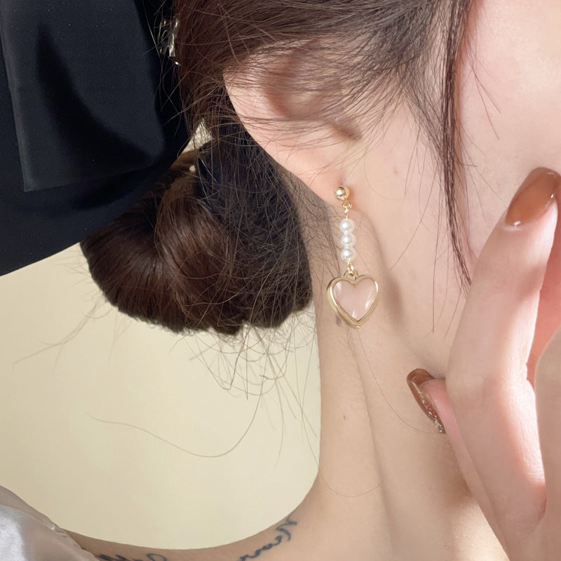 Sier Needle Style French Gentle Pink Love Heart Simple Earrings