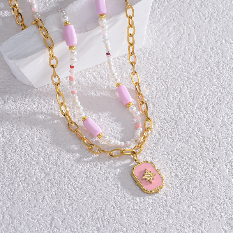 Star Design Elegant Lady Beaded Double Layer Twin Necklaces