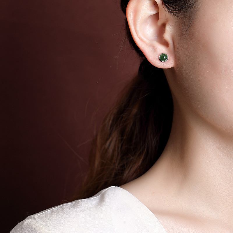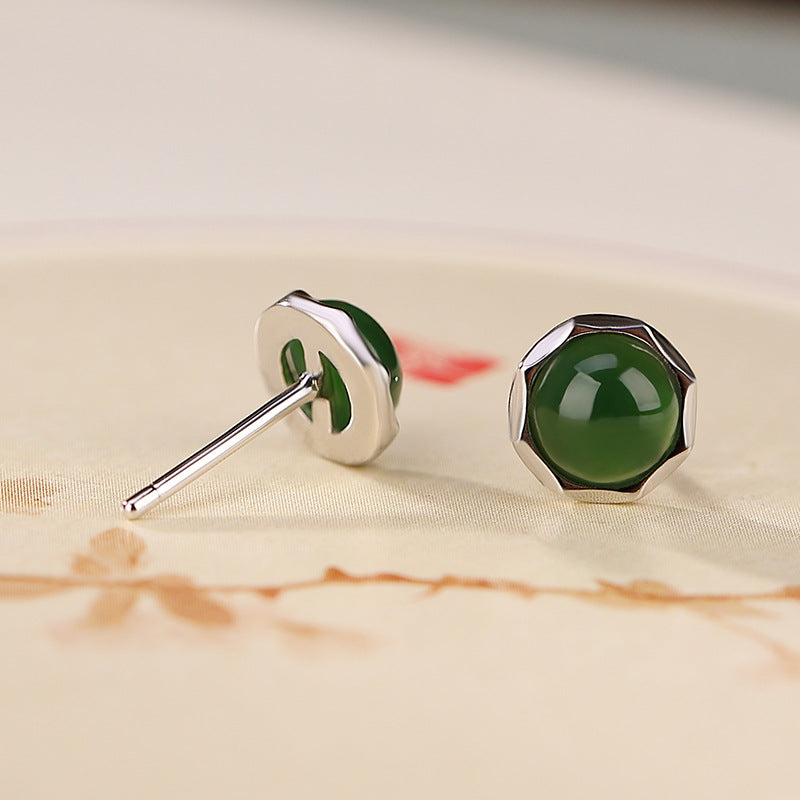 Sterling Jade Green Fashion Trimming Ball Small And Versatile Earrings