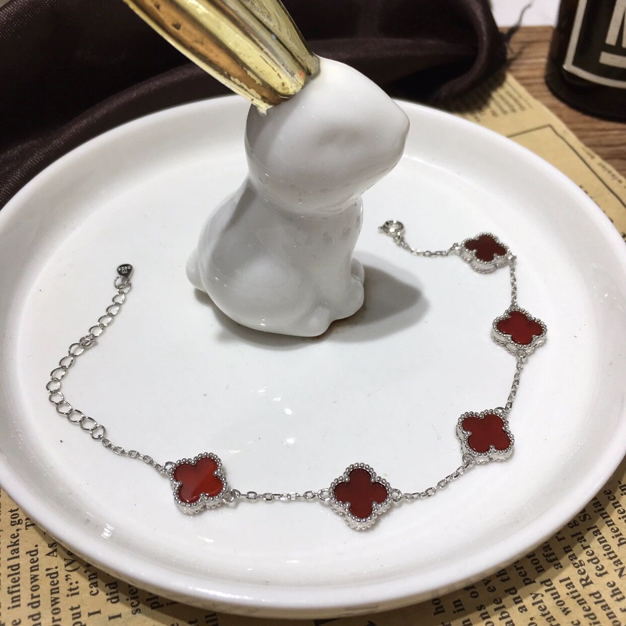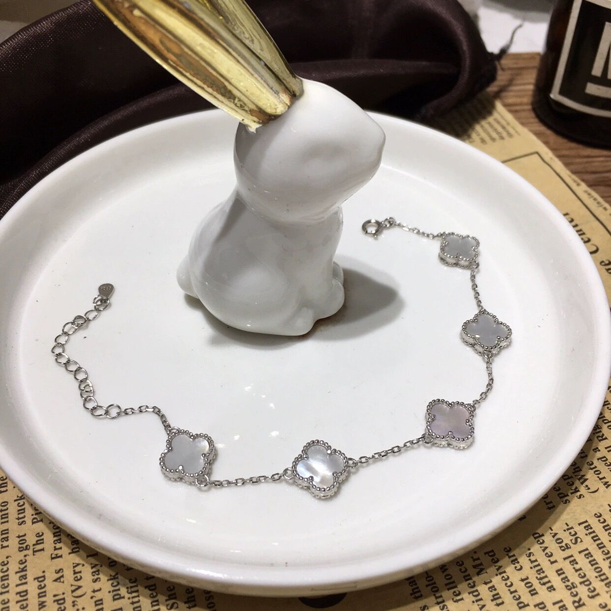 Sterling Sier Four-leaf Flower Cross Rhinestone Bracelets