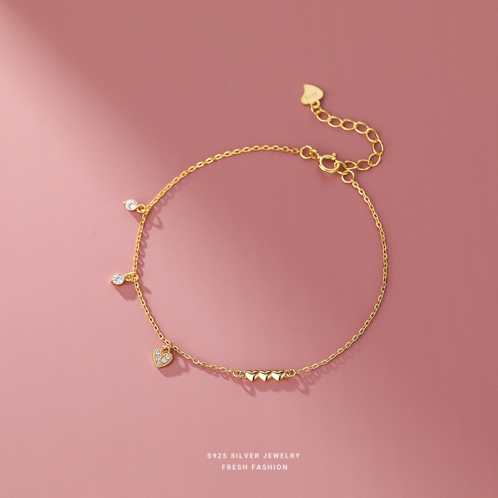 Sterling Sier Glossy Heart Rhinestone Female Minimalist Bracelets
