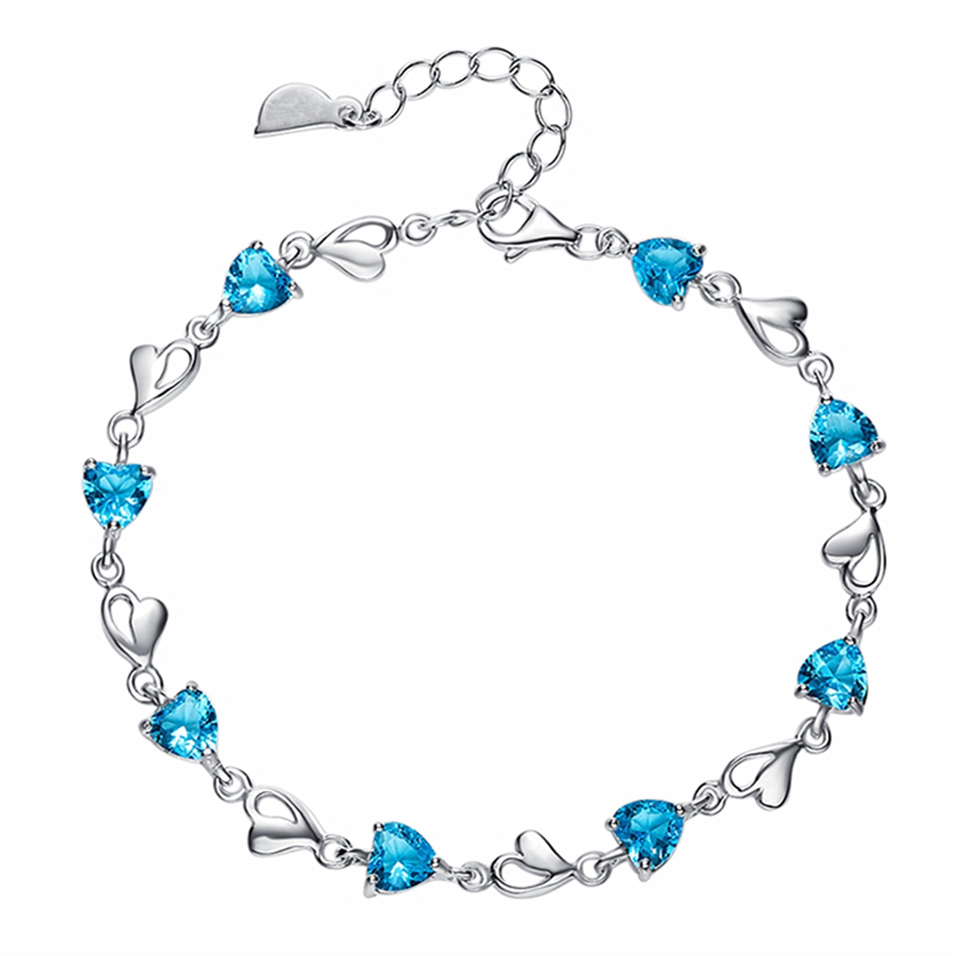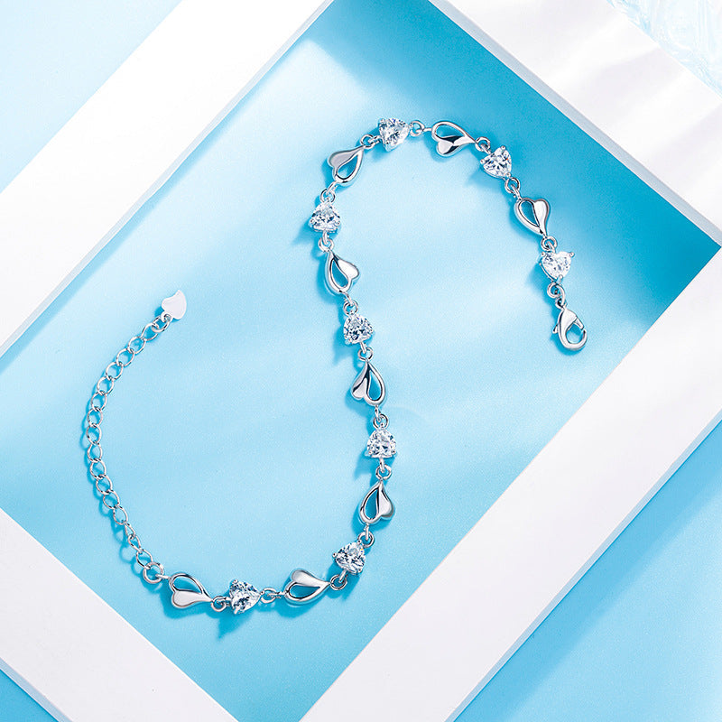 Style Fashion Sier Jewelry Crystal Zircon Amethyst Heart Female Bracelets