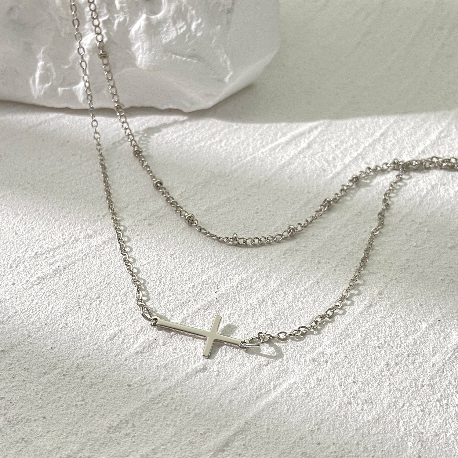 Women's Accessories Clip Beads Cross Short Gold-plated Necklaces