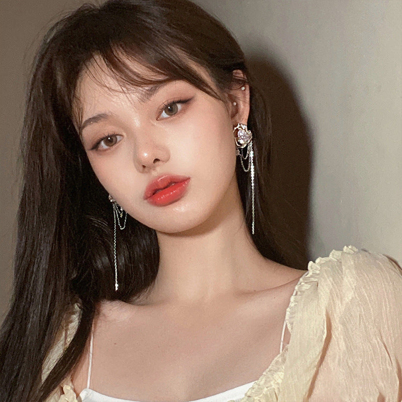 Women's Drop Zircon Tassel Chain Niche Design Earrings