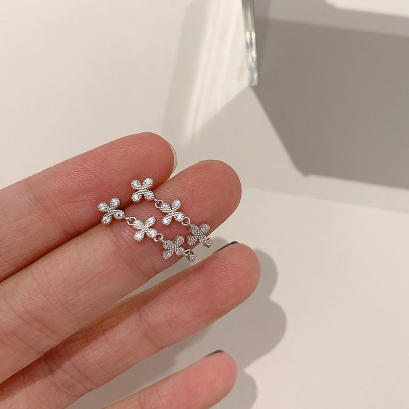 Women's Flower Tassel Sterling Sier Simple Mori Rings