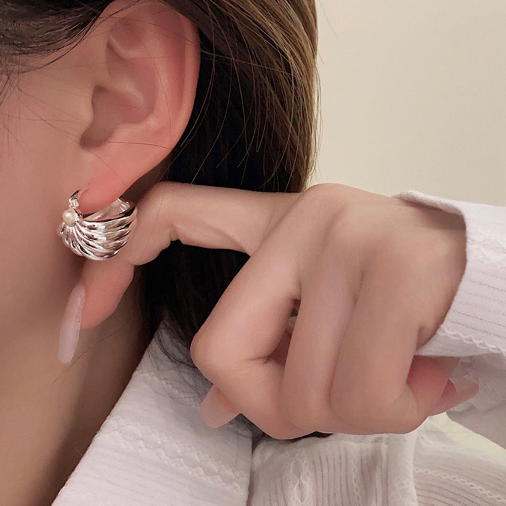 Women's French Style Vintage Stripe Pearl Metal Earrings