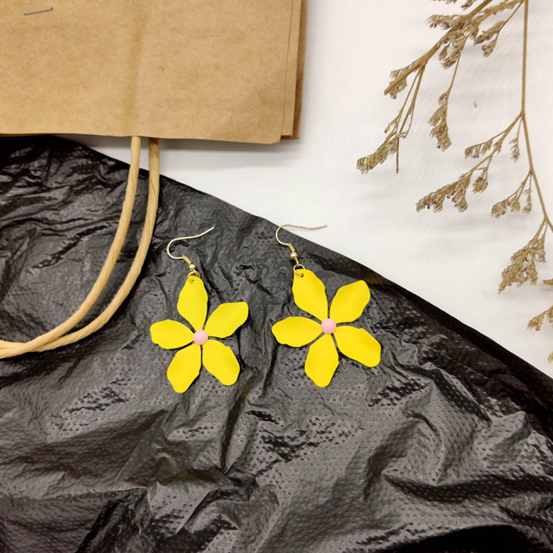 Women's Fresh Yellow Series Pearl Tassel Beautiful Flowers Earrings