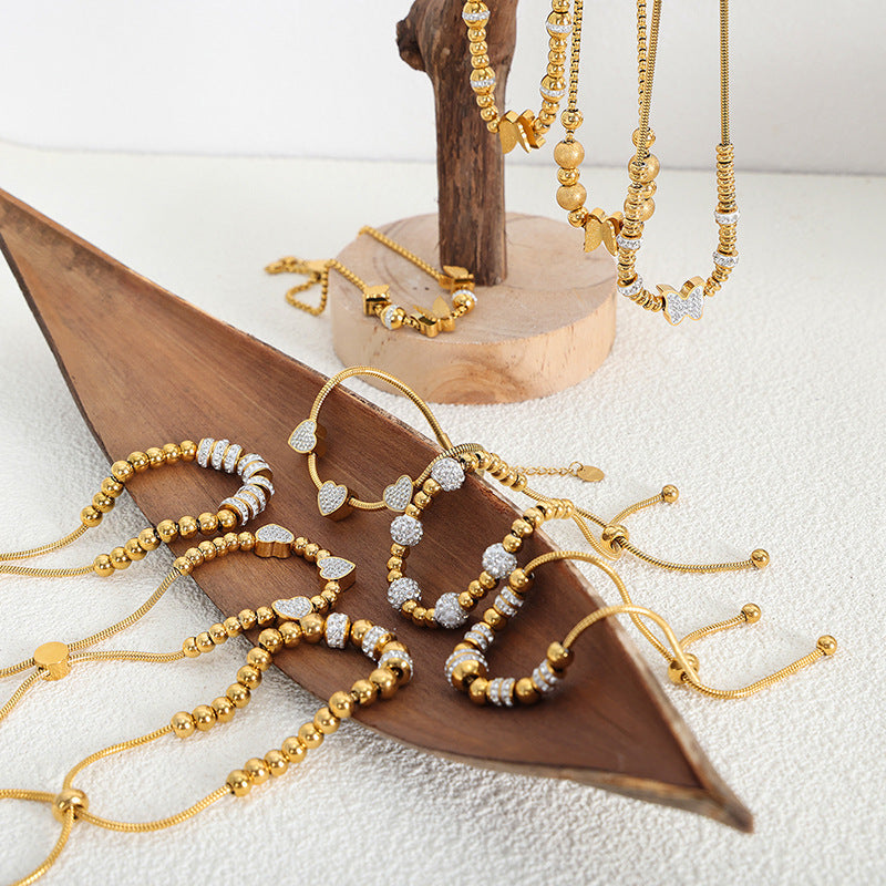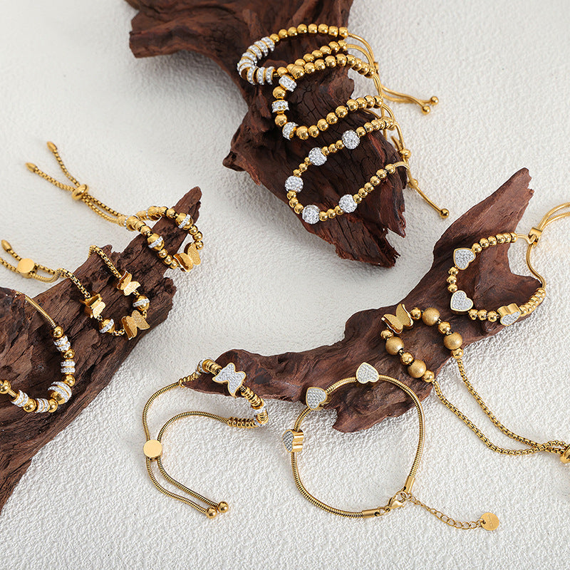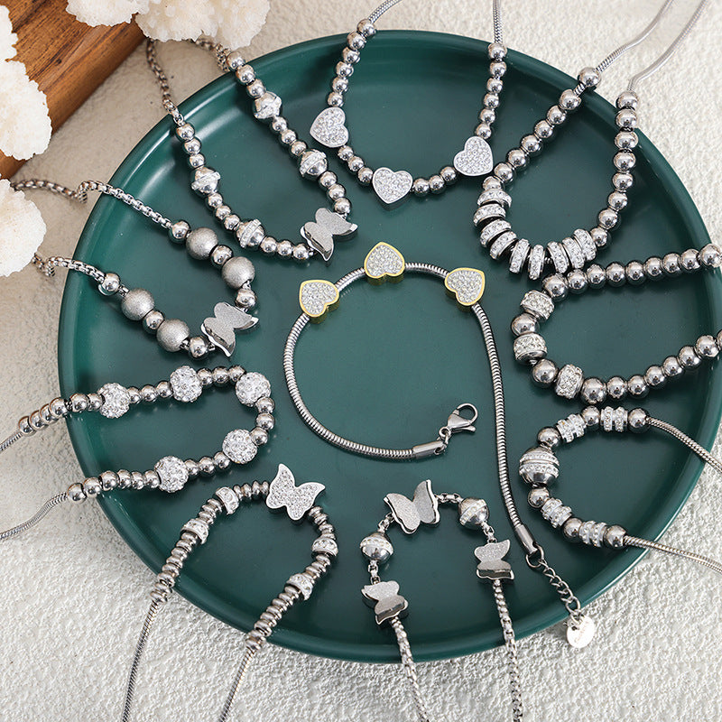 Women's Full Of Diamond Zircon Beaded Trendy Titanium Steel Bracelets