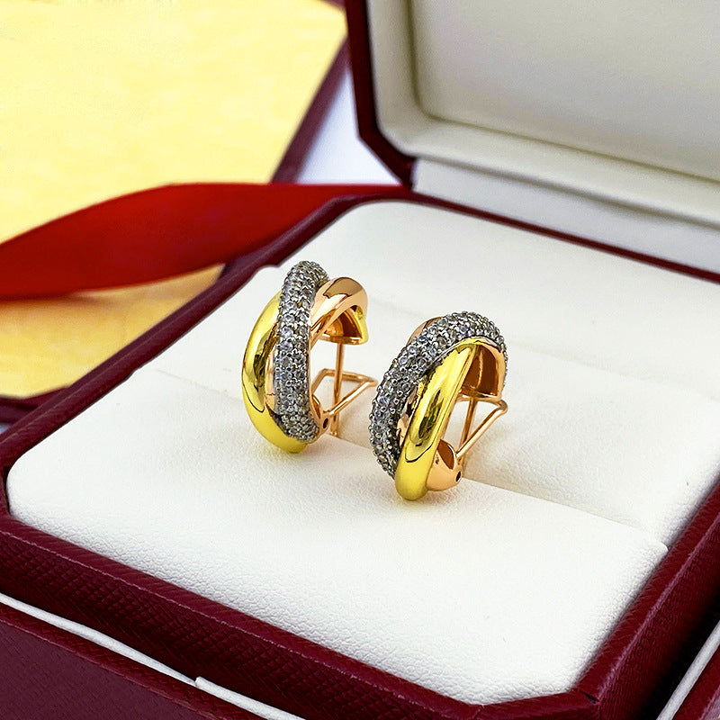 Women's Khaki Three Three-color Ear Twist Sier Earrings