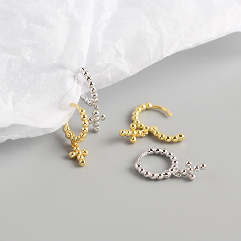 Women's Luxury Sterling Sier Design Geometric Beads Cross Earrings